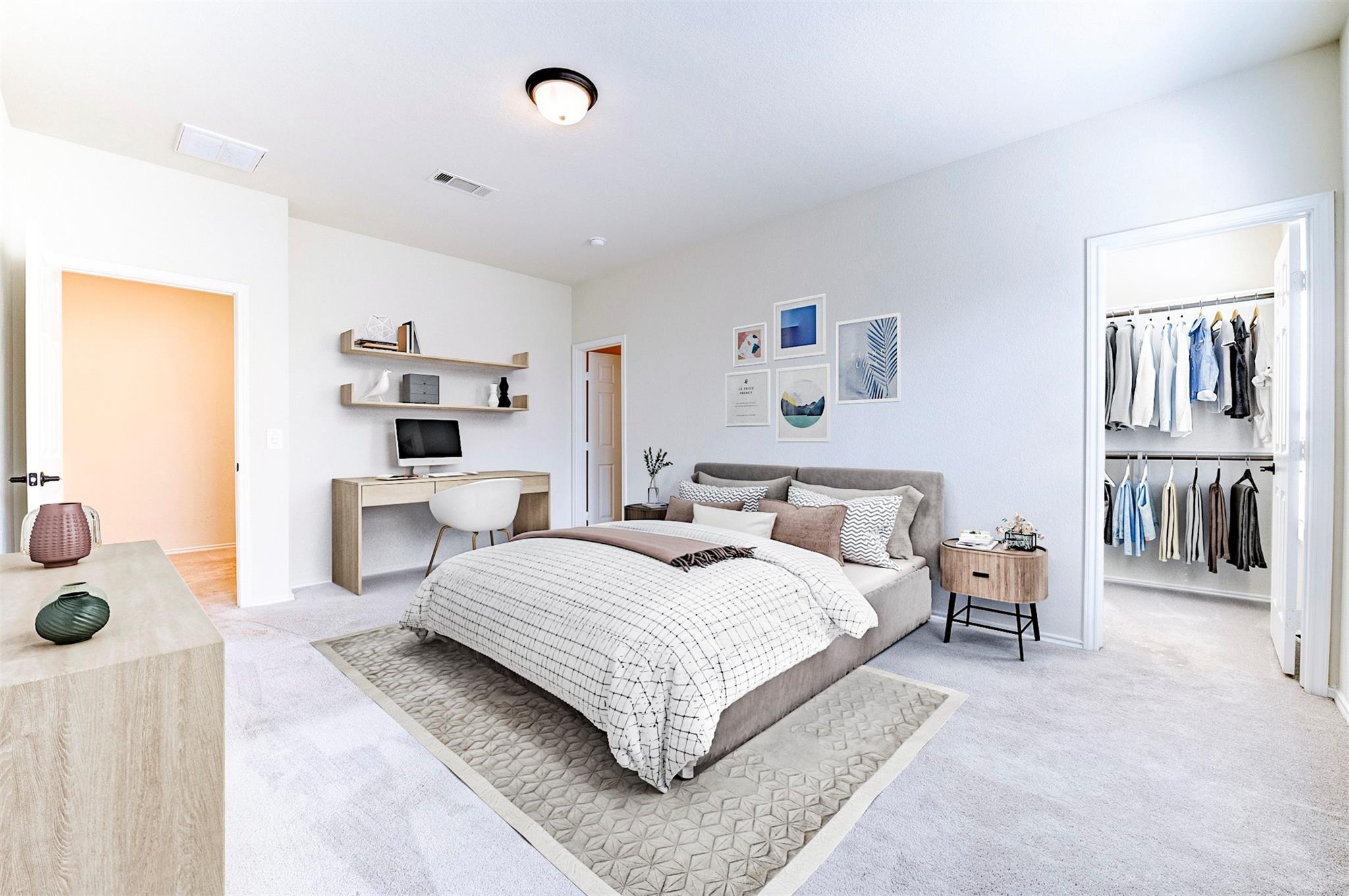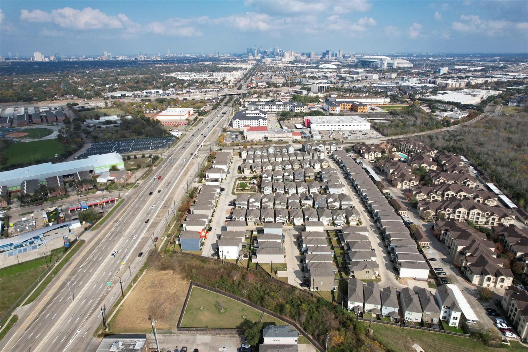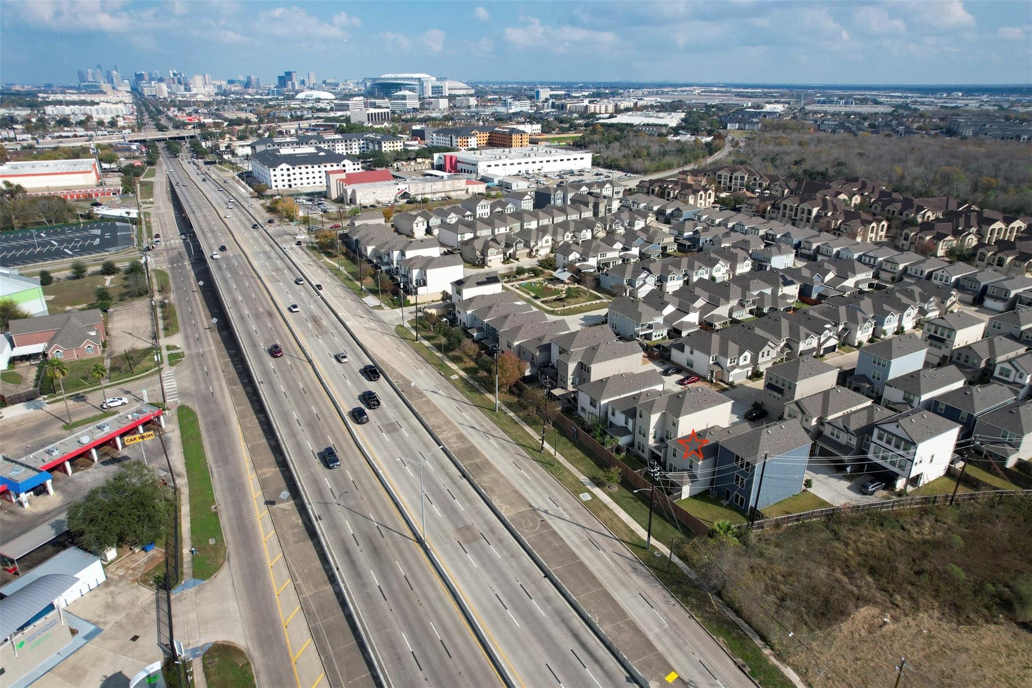 Tucked into the quiet Avondale on Main community, 10504 Marston Vineyard offers a well-designed balance of comfort and efficiency, all outside the flood zone. The first floor features wood-look tile throughout and an open layout where a spacious kitchen with generous counter space and storage flows seamlessly into the living and dining areas, making it ideal for everyday living and entertaining. Dark-stained oak stair treads lead upstairs to a private primary suite set apart from the secondary bedrooms, along with a centrally located, generously sized utility room for added convenience. Freshly steam-cleaned carpet gives the home a move-in-ready feel. The location adds even more appeal, just minutes from Hermann Park, the Texas Medical Center, Wildcat Golf Club, and close to local favorites like Bunslut, El Tiempo, Tamashi Ramen, 7 Spice, and more.