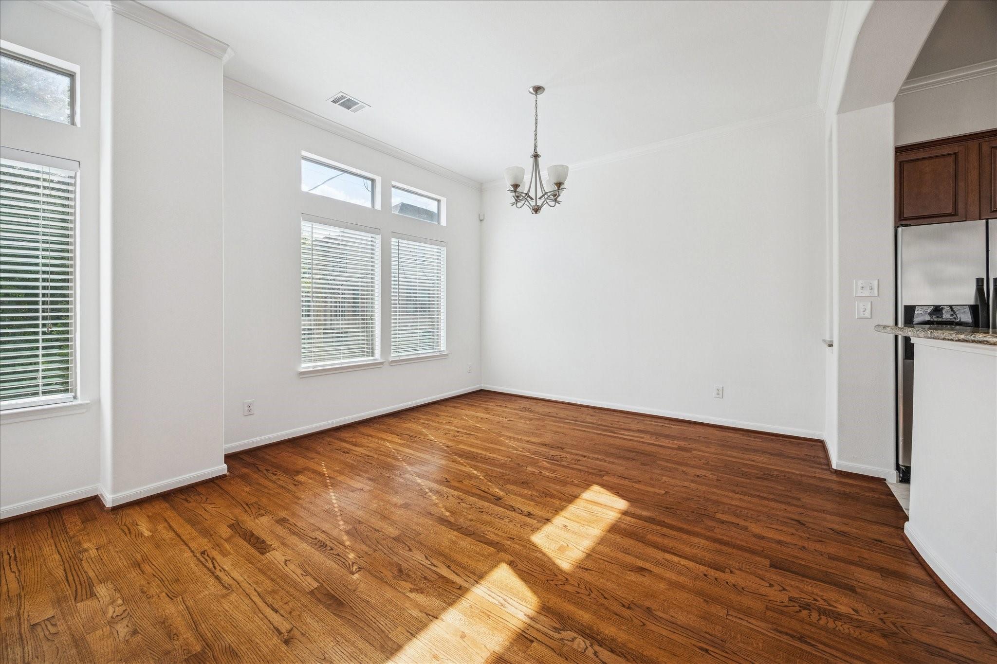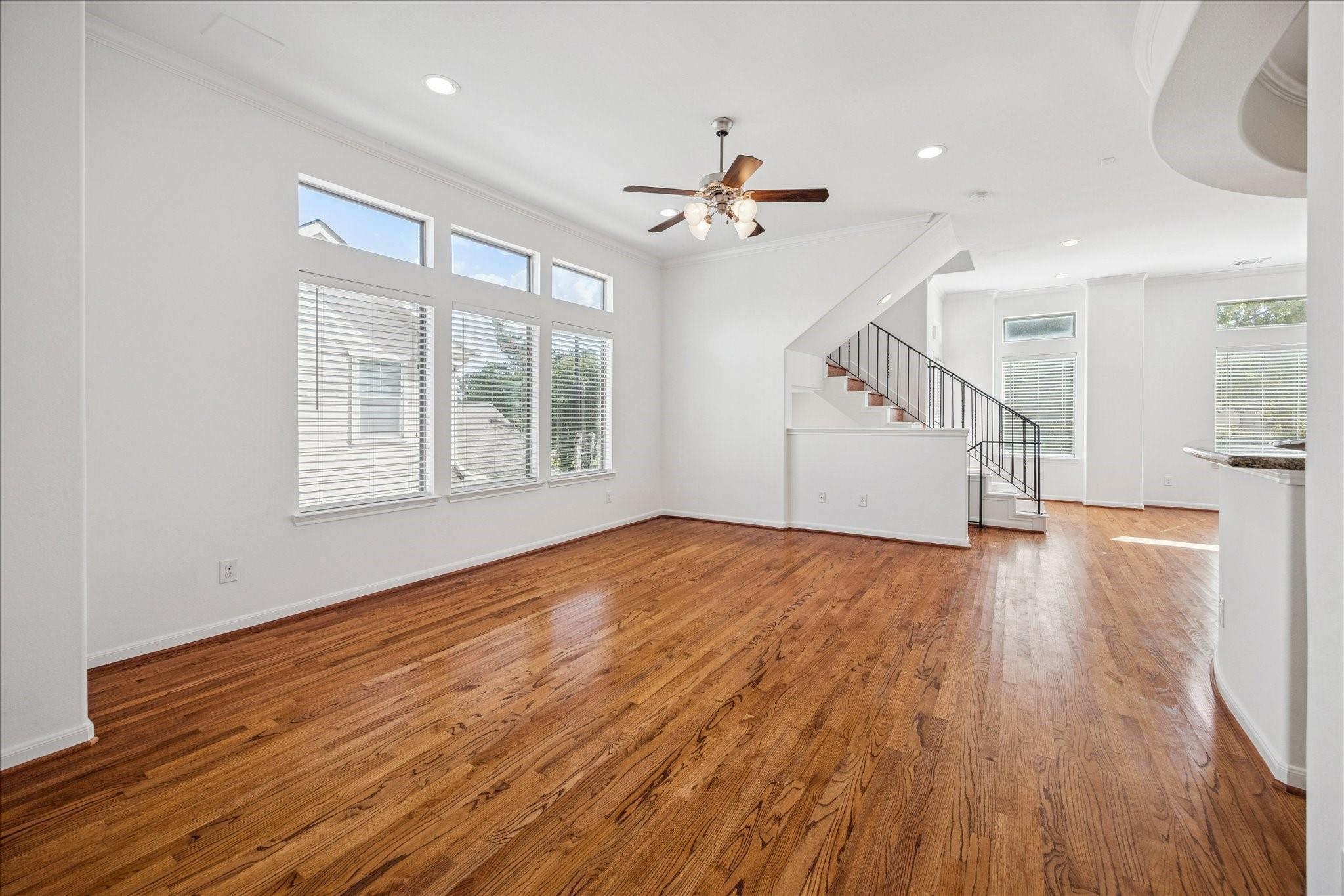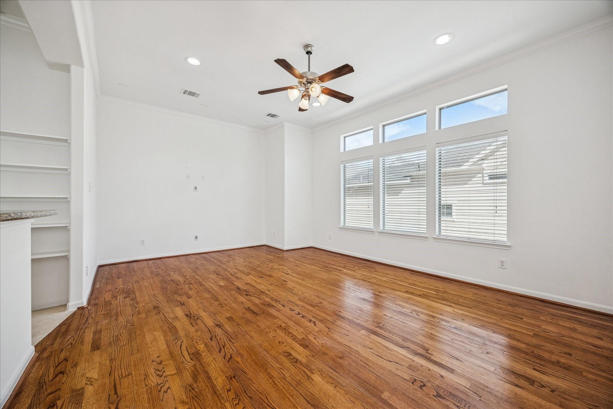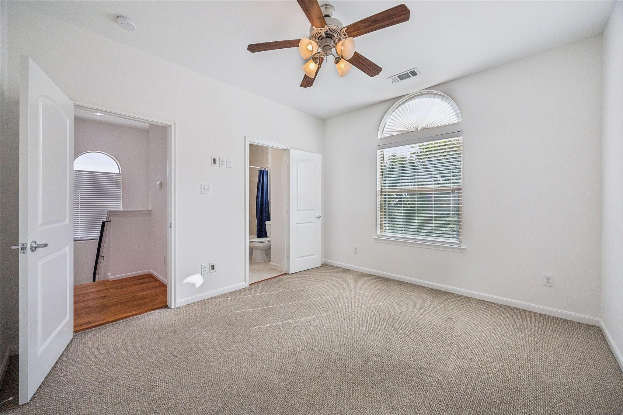 Sitting on a desirable corner lot in the heart of Cottage Grove, this home seamlessly blends classic design with efficiency. With more than 2,000 square feet, it offers a spacious first-floor bedroom with direct access to a sizable side yard through French doors. The second-floor living and dining area is filled with natural light and lined with real oak floors, while the kitchen features a generous breakfast bar that opens to the living space, perfect for everyday living and entertaining. Upstairs, you'll find a large secondary bedroom and an expansive primary suite with cathedral ceilings and two walk-in closets. In 2025, the home received a full interior repaint, and the balcony was completely rebuilt for added comfort and peace of mind. All minutes from Heights MKT, Memorial Park, I-10, 290, and 610, placing you close to everything the city has to offer.